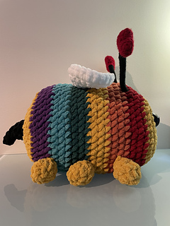 This lovable rainbow bee is ready to buzz to life! Create this big bee plush with just one stitch: single crochet!