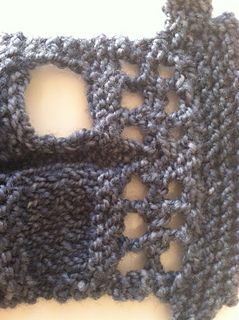 The gaps for the sign and the windows are created by binding off a certain number of stitches, cutting the yarn, and eventually casting on the same number again. You’ll end up with quite a few loose ends, but so does the Doctor. ;)