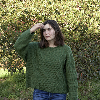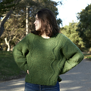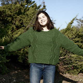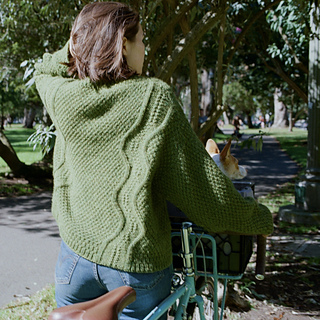 The Bike Path Sweater is knit top-down with a drop shoulder construction. It features dramatic cabled bike paths, grass-like moss stitch, and unique gradient ribbing at the hems. This pattern has been tech edited and test knit in all sizes. Matching made-to-measure pet sweater pattern included!