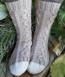 • Birchlight Socks capture the tranquil rhythm of nature — soft cables flow like birch branches dancing in the wind. Worked cuff-down on 3 mm needles with contrasting toe and a classic heel for timeless comfort. A calm and elegant design ️ *