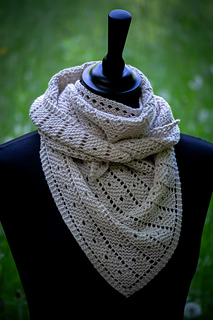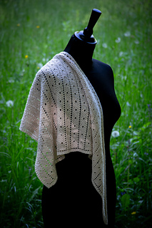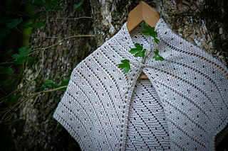 18 stitches and 28 rows = 10 cm / 4 inches in lace stitch on US 6 / 4 mm needles after blocking.
