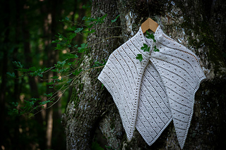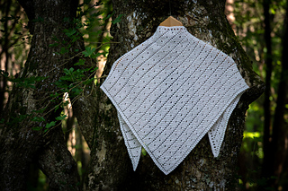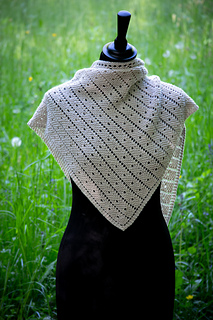 The Bird Feeder shawl begins at the bottom tip and grows upwards into an expansive triangle. The pattern is worked in garter stitch with eyelet dots and bands, creating a dynamic but uncomplicated knitting pattern. Bird Feeder is a minimalist design in which the yarn takes center stage, allowing its texture and color to shine in every stitch.