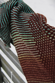 This shawl pattern has been on my mind for a long time. I wanted to play with colours and I especially like the way the strips collaborate with the dots.