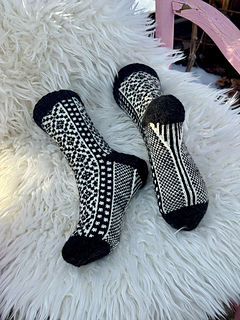 Sokkene kan strikkes i større str ved å bruke et litt tykkere garn og/eller bruke ½ - 1 pinnestr større. Mønsteret kan forlenges i foten ved behov.