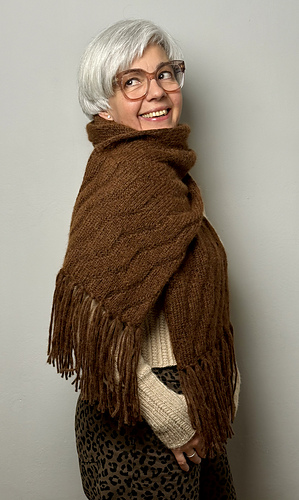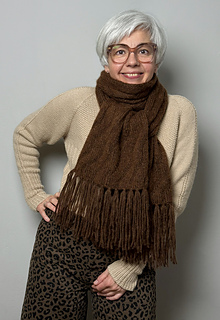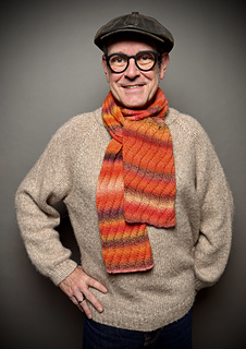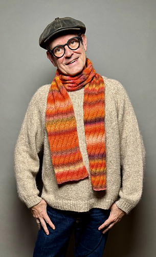Hier habe ich ein schönes Verlaufsgarn in Herbstfarben gewählt, die dem welligen Muster eine Tiefe und Bewegung verleihen. Die dünne Wolle ist sehr gut für einen Schal geeignet, den man auch im Übergang tragen kann und der sich leicht unter einer Jacke oder