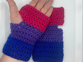 This is the pattern that I use to make my Bisexual Pride fingerless gloves. I thought I would share the pattern with you.