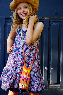 Bishi begins in the middle of the base with a circular cast-on. After increasing to work the base, the body of the bottle holder is knit in round using a simple mesh pattern. Two options for straps are provided, with both finished off by simply tying them together.