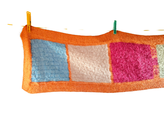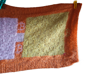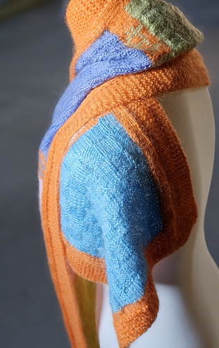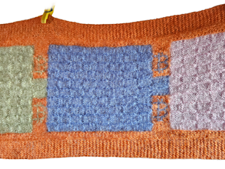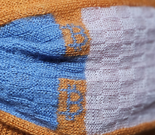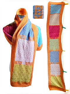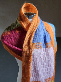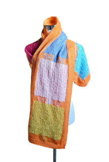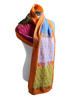 A “slightly” ^^ difficult scarf, using rib pattern, intarsia technique, stranded colorwork and checkerboard pattern.