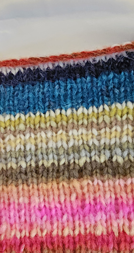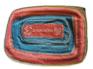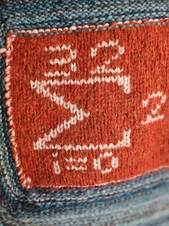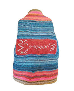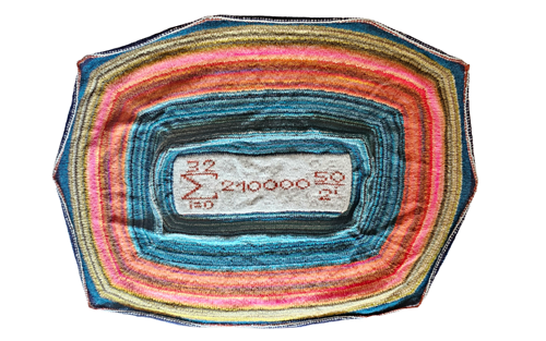 An (mathmatical) equation blanket with a double knitted/double sided inner part, the outer part is worked in stockinette stitch in rounds.