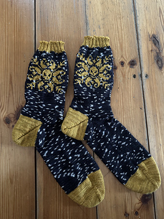 They are worked toe-up using a short row heel with added shaping to accommodate the instep.
