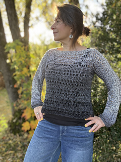 BLACK CAT ist ein variabler Pullover aus 1 Bobbel mit durchgehendem Farbverlauf, der in einem Stück von oben nach unten gehäkelt wird. Das Besondere daran: Du passt ihn dabei genau Deinen Wunschmaßen an!