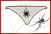 Any fingering weight yarn will do for this simple bandana, and (as with many stockinette bandana patterns) with a fairly customizable width. The pattern calls for three different colors so that you can highlight the red abdominal hourglass against the black spider body.