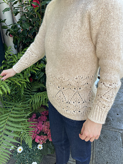 The hem and sleeves end in a gorgeous lace pattern that is truly addictive to knit - just place stitch markers between the repeats to stay on track.