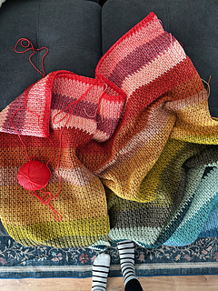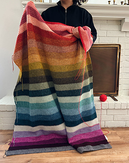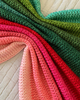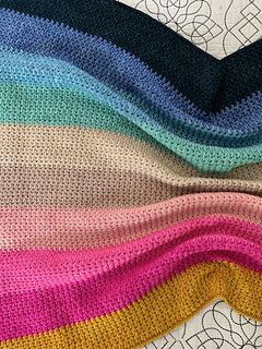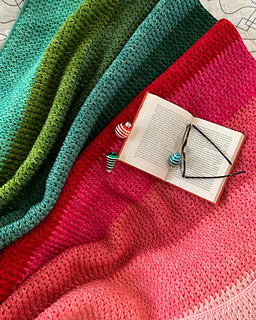 Pattern includes written instructions for a lap size and full size blanket, as well as resource links for HDC foundation row and feather stitch.