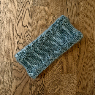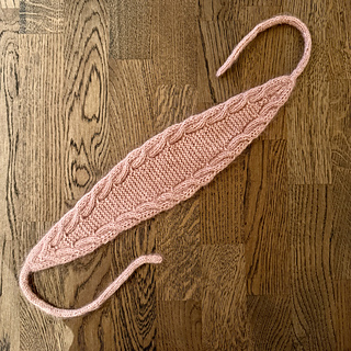 - Hårbånd strikkes med 26 masker på 10 cm.
