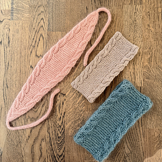- Pannebånd kan strikkes i både 22 og 26 masker på 10 cm.
