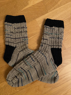 Pinner 2,75 – 3 mm for mellomtykt sokkegarn. 3 – 3,5 mm for tykt sokkegarn. Bruk din erfaring og strikk med pinner som passer deg og ditt garnvalg. Jeg bruker tynnere pinner enn oppgitt på garnet jeg velger, da jeg syns sokker skal bli faste og gode å ha på.