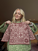 Blomsterkaos Junior er en oversized genser for barn med en boksete passform. Genseren er basert på den originale oppskriften til blomsterkaos for voksen, men tilpasset blomstene i mindre varianter. Mønsteret er tegnet og tilpasset hver enkelt størrelse. Blomstene på denne genseren er i alle fasonger og former, og plassert hulter til bulter. Genseren har derfor fått navnet; Blomsterkaos Junior.