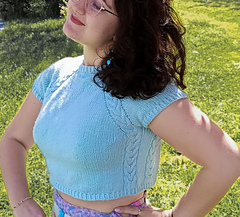 Please, have in mind that the yarn estimated is for cropped length, depending on how long you want your tee, the amount of yarn needed may change.