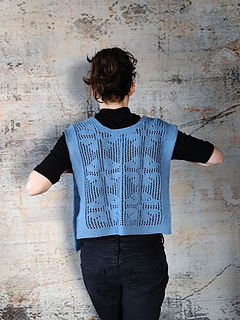 Bloomie to lekka narzutka o luźnym kroju, wykonana z 122 g włóczki Drops Safran (100% bawełna, 160 m / 50 g) w odcieniu błękitu. Projekt świetnie sprawdzi się również w wersji z wełny jako ciepły dodatek na chłodniejsze pory roku.
