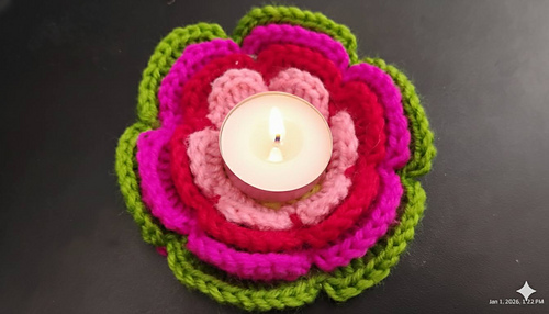 Create a stunning blooming rose tea light holder with this easy-to-follow crochet pattern!