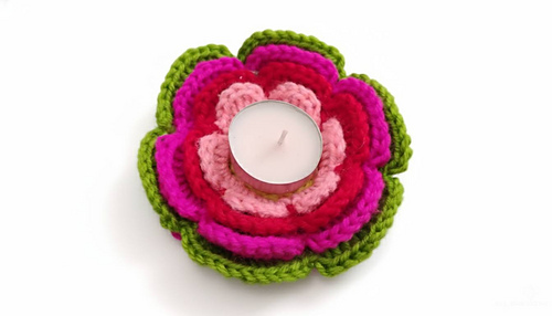 crochet tea light holder pattern, crochet flower candle holder, crochet blooming rose pattern, easy crochet home decor, crochet gift pattern, crochet flower centerpiece, crochet candle cozy, crochet rose pattern, crochet table setting, crochet handmade decor