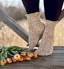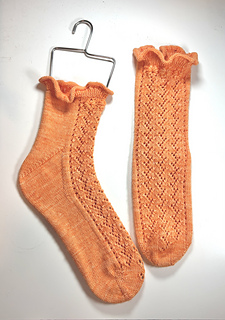The pattern features a Fleegle heel and includes two cuff options: a soft ruffled cuff or a classic ribbed cuff. A sweet but wearable design that brings a touch of summer to your needles.