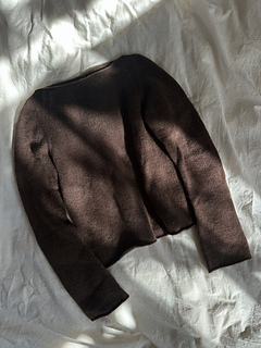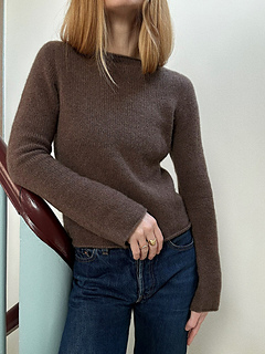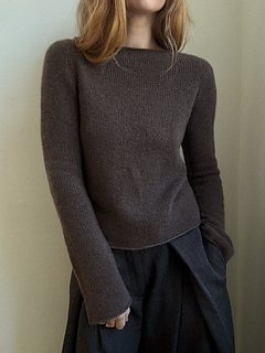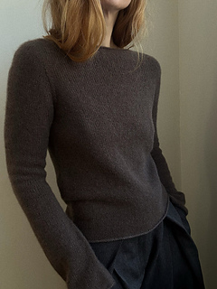 Blouse No. 4 is a simple, long-sleeved cashmere blouse. The blouse features a boat neck and a close-fitting silhouette.