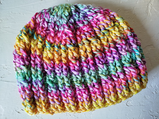 This is a great top down beanie pattern. Written in 5 sizes. Lovely texture with an easy round repeat. Has a bit of a cable look that is stretchy, cozy and warm.
