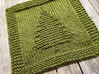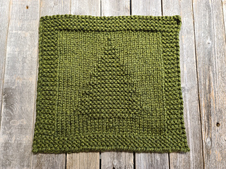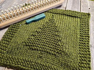 LOOM Knitting Pattern ♥ The Blue Spruce Tree Square is worked flat from the bottom up. It features a garter stitch border and a center traditional tree motif. A chart and written instructions are included.
