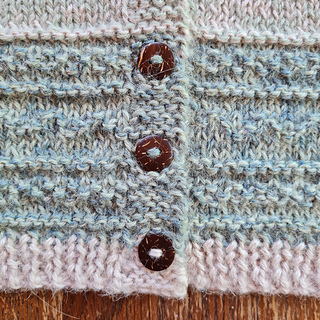 This baby cardigan is knit in one piece from the top down in a classic raglan design, using short rows (wrap and turn method) to shape the neckline. Sleeves are worked in the round. No seaming required! The textured pattern on the body is made up of knits and purls, with adaptations to fit each size.