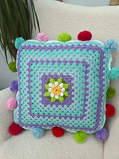 Crochet the beautiful Blush Blossom Pom-Pom Pillow, a colourful and textured design featuring delicate blossom motifs and playful pom-pom edging. This cheerful project makes a lovely statement piece for your home or a thoughtful handmade gift.