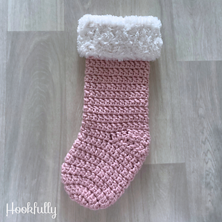 This easy crochet pattern will help you create a large Christmas Stocking with super bulky yarn using mostly the double crochet stitch.