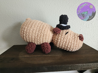 One of the kids leaving my husband’s summer program had a request of a capybara for a going away gift. While there’s cute patterns out there, I wanted something a bit bigger (but not huge) that also had some cute element so here is the fancy capybara as requested by the student! Also the student chose the name Bob