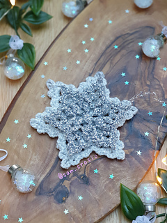 YARN: any cotton thread, lace or fingering yarn and optioneel glitter thread held together (size 10 thread, lace weight of fingering yarn)