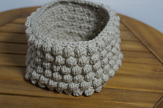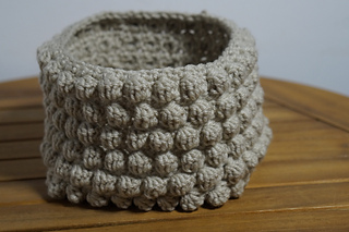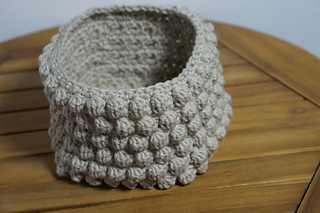 A beautiful design storage basket for your home made by you, the bobble stitch gives a beautiful and unique look to the basket which you can make bigger ore smaller, taller or shorter by choosing how many chains you make and how many rows/ rounds as well.