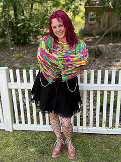 This stunning shrug is made from scrap yarn of various weight and colours, a combination of thick and thin ones. Details on how to combine yarns and other special techniques are explained in the pattern.