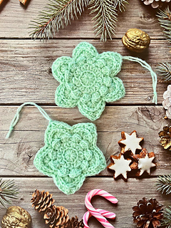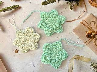 • Star Size: Varies with design, and brand and weight of chosen yarn.