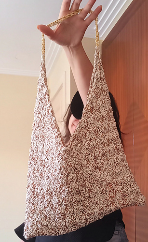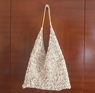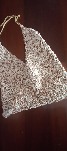 Feita na técnica crochet C2C, combina 2 fios da marca Portuguesa, Algodões da Selva. O Rustik Love Pollen 8/8 (100% algodão, 200g, 340m) e o fio metalizado (25g).