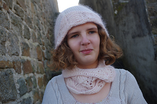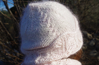 l’ensemble rose est tricoté avec la laine BB mérinos de Fonty (blanche) + le mohair et soie Sarmentine rose poudré de Fibres d’Elfes (mohair de France)