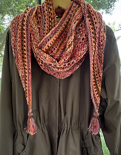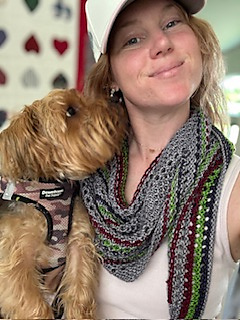 A nod to my Scottish roots I wanted to make a Wee scarf in the family tartan colors. Written for 4 colors this scarf can be made with 1 full skein of DK and 3 minis. Use high contrast colors or nice subtle blended hues. The pattern can also be made in a 2 color version using a full skein of one color and 150 yards of a contrasting color. The possibilities are only limited by your imagination. All the samples were knit with yarn from Olive & Two Ewe Studios. The color changes are knit in 2 row sequences that make it easy to keep organized as you go along. If you don’t want to carry the yarn, no problem. Just cut at the end of the 2 row sets, tie off and move on with main color. The fun texture is achieved with Eyelet rows and a less-common “knit-below” stitch. The pattern includes video links for quick reference. Once you see it, you won’t believe how easy it is and how great it looks on the back as well as the front - perfect for a scarf/wrap. So quick and easy to knit yet impressive enough to give as a gift.