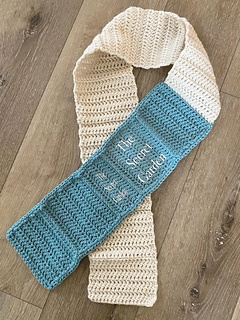 Super cute Book Scarf looks like a book when folded. Pattern includes link to SVG files for 23 popular book titles.