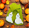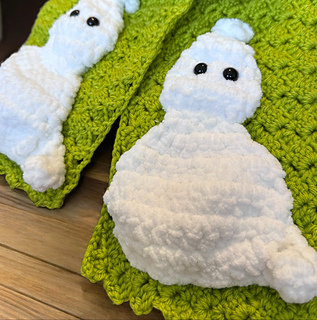 This playful scarf is worked in US crochet terms and uses only simple, beginner-friendly stitches to create something that’s both cozy and adorable. The sweet little ghost appliqués add just the right amount of spooky-cute flair, making this the perfect accessory for Halloween or the fall season.