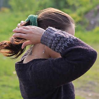 Born From The Ashes is a top-down raglan with a colourwork motif at the bottom of the body and sleeves. The sleeves are long with a little bit of positive ease at the forearm. The colourwork represents flames, fading from the main colour to the contrasting colour. My Fire Fingerless Mitts inspired it, but the motif is more adapted to a larger piece. Born From The Ashes means something new will be created from something destroyed. As the phoenix is reborn from his ashes, you can shape something new in your life from a situation or an object that has ended or been destroyed. A good example for this sweater would be using a yarn that once was knitted in another sweater. Let’s free your imagination and create new and beautiful things in your life. Happy knitting!