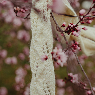 El grosor del hilo utilizado es un dk, con el obtenemos un ancho de unos 8cm para nuestro fular.
