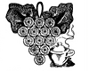 A unique hot plate mat which looks like a bunch of grapes may be hung on the wall as a plaque when not in use on the table.