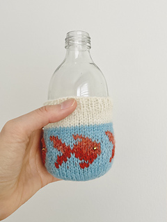 They are bottom-up seamless bottle socks with stranded colourwork.