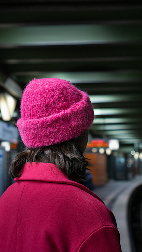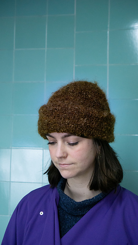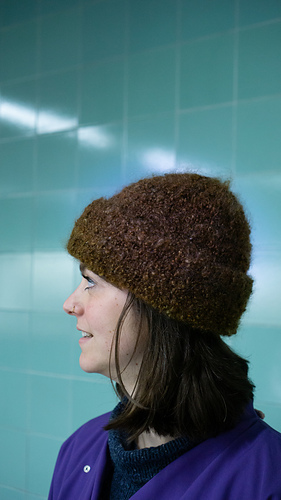 This bulky hat is worked from the bottom to the top, starting by working a double folded brim. The fold is defined at two points by a double knit knitting technique.