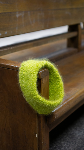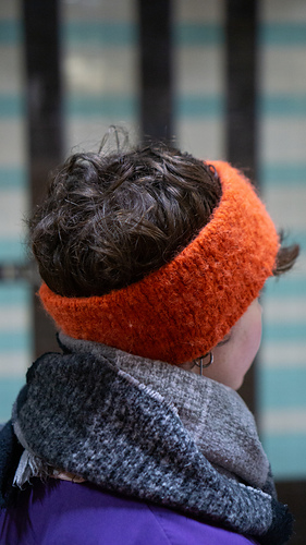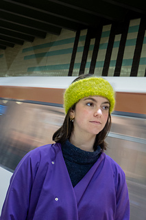 This bulky headband is double layered, starting with a provisional cast on and followed by working in stockinette stitch. The headband is folded at two points, given structure by a double knit knitting technique. To finish, the provisional cast on will be opened up and the work is sewn together with kitchener stitch.