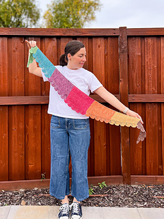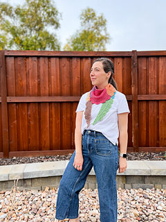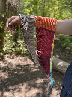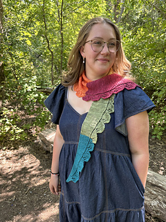 Bountiful is a scarf-style shawl with a lovely leafy border. It is knit from one point to the other, changing colors as desired, to achieve a delightful finished project perfect for autumn. The leaf border and i-cord edge are knit concurrently with the body for minimal finishing at the end.